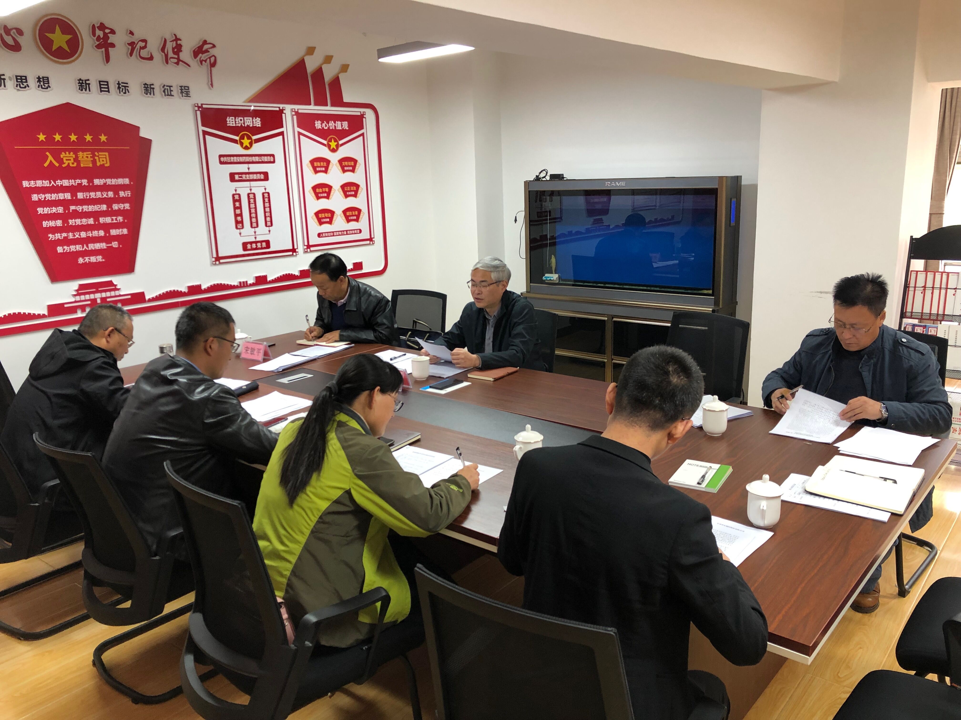 10月23日下午,甘肅普安制藥股份有限公司在蘭州市城關區皋蘭路35號建行大廈15樓會議室召開黨委理論學習中心組學習會議。會議由公司黨委書記、董事長胡寧主持,黨委副書記、副董事長、總經理、工會主席宋敏平,黨委副書記、董事、常務副總經理錢雙喜,黨委委員、副總經理劉茂盛,黨委委員、副總經理宋月紅,黨委委員、紀委書記李雎,財務總監趙正財參加了此次學習交流。