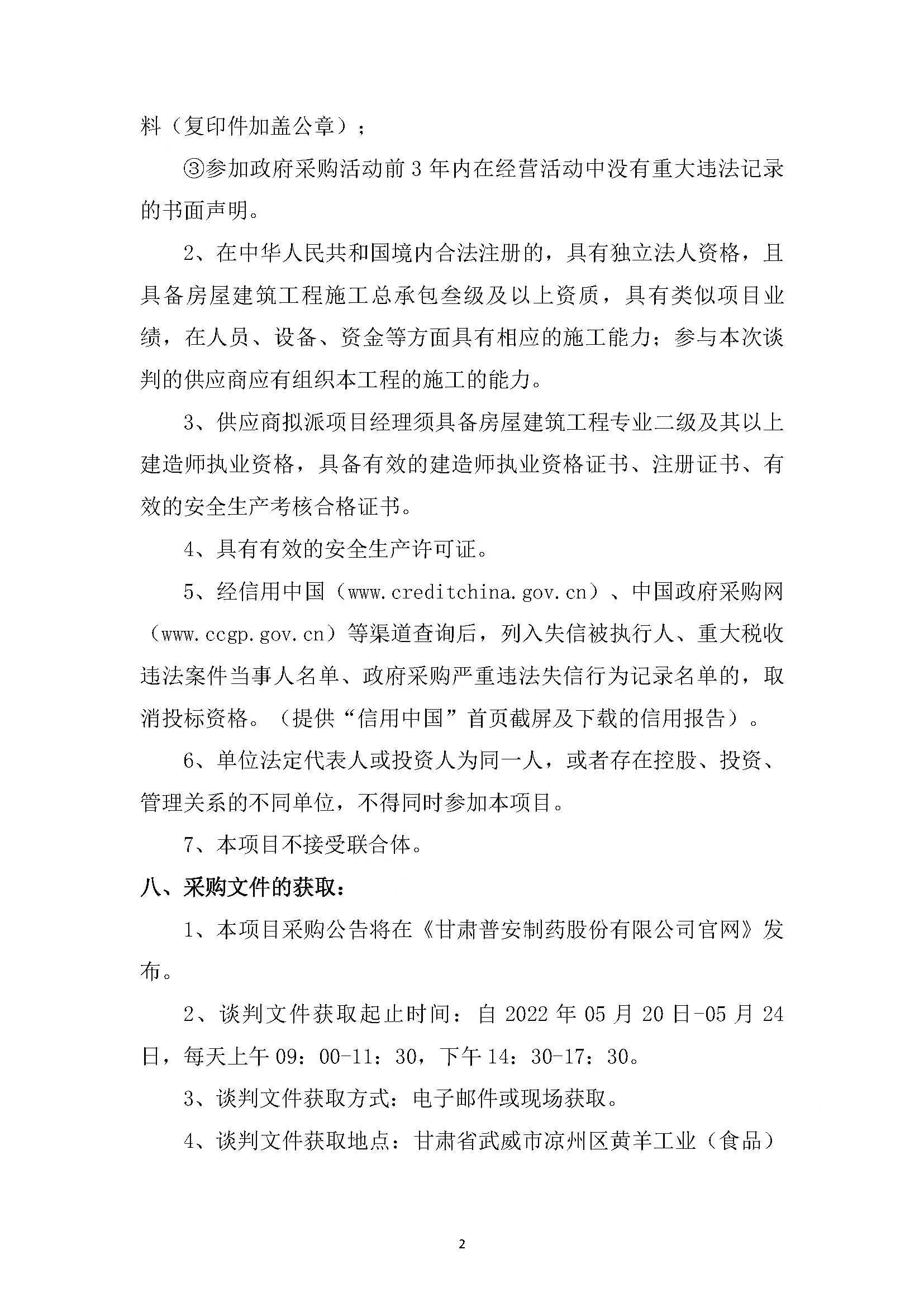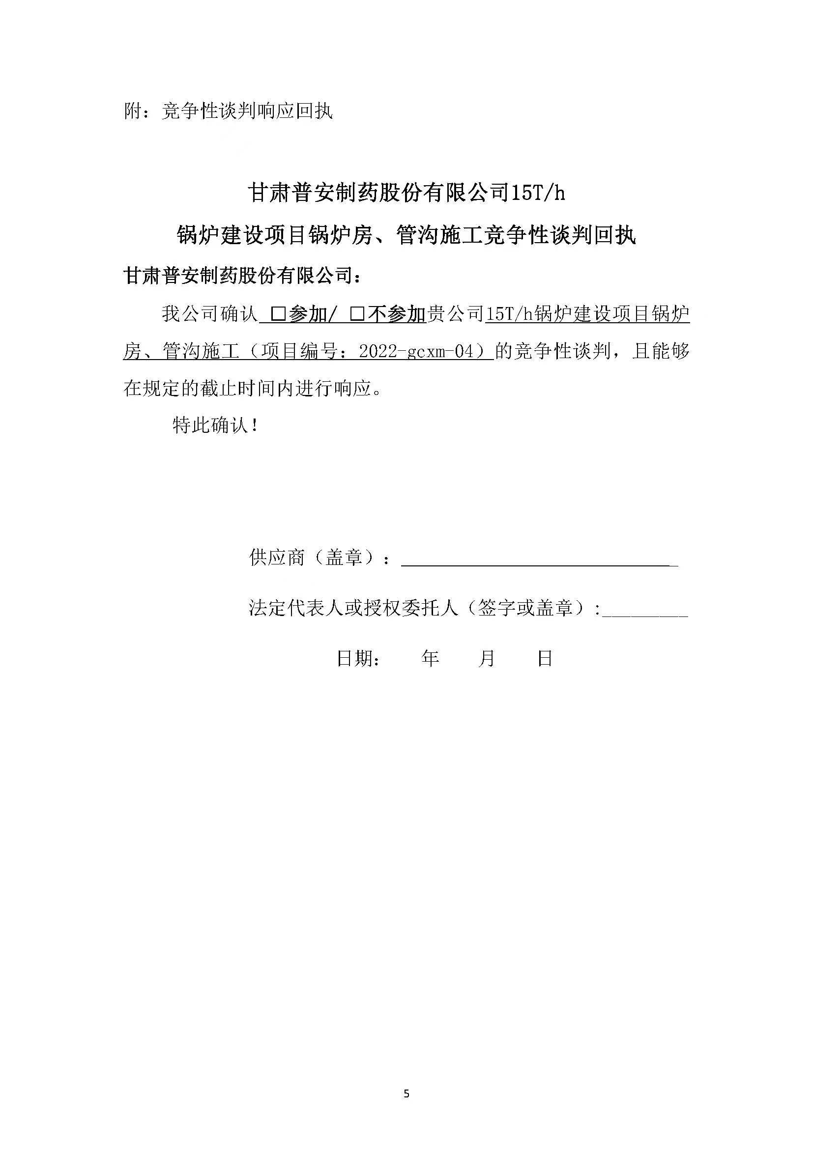 甘肅普安制藥股份有限公司15T/h鍋爐建設(shè)項目鍋爐房、管溝施工競爭性談判公告
